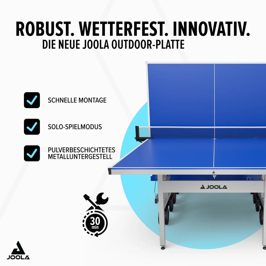 Premium Outdoor stol za stolni tenis Joola J500X. Bilo da sija sunce ili pada kiša – JOOLA J500X je uvijek spreman za vašu sljedeću utakmicu.